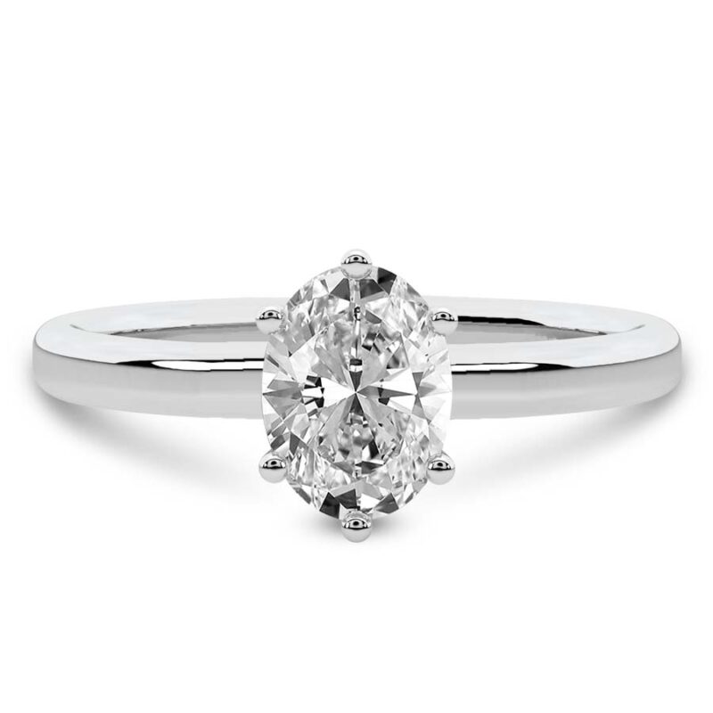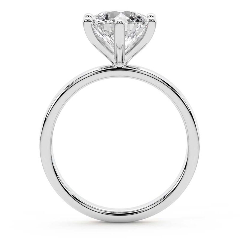 This classic 21kt white gold six prong 1.5mm setting gives maximum protection to the center lab diamond while allowing the entire lab grown diamond to be seen from all angles. Its sleek and polished design creates an understated elegance, a perfect complement to the diamond's radiance. Like a sparkling constellation in the night sky, these six-prong lab diamond ring lights up any occasion.