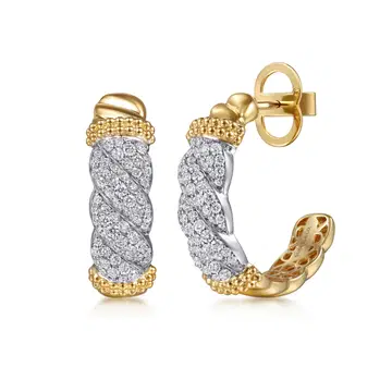 White-Yellow Gold Bujukan Huggie Pave Diamond Earrings